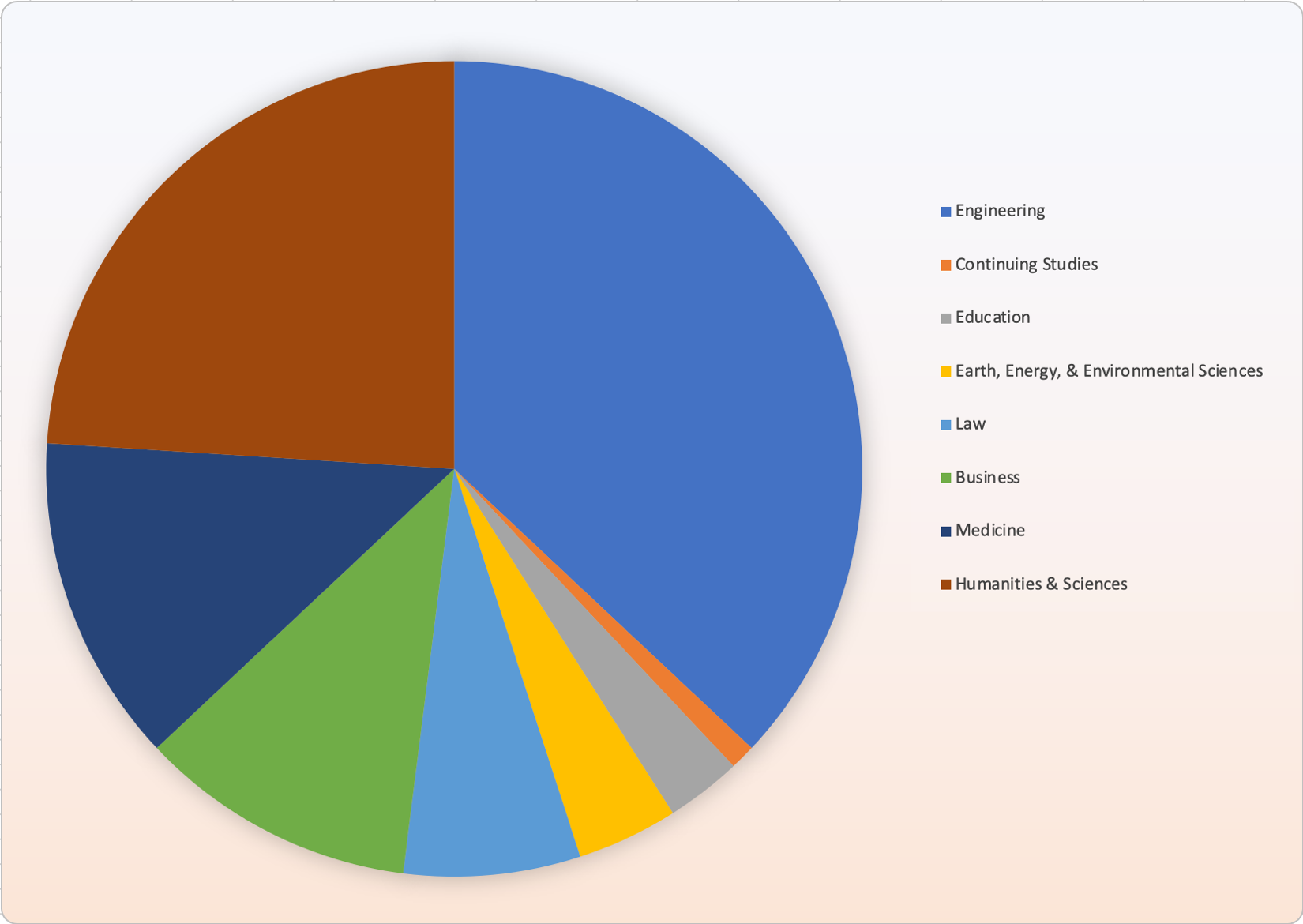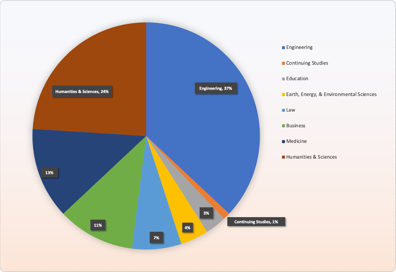 Combining color with additional information can improve comprehension for all individuals. In the following pie chart, labels are included that identify the data value and the category name on the chart in addition to displaying a legend. This results in a combination of both color and data to present information to the user.