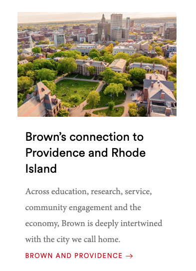 There are times when images also serve a function, like a button for example. In these cases, the alt text should communicate the function and include the appropriate text from the image. For the button below, the alt text could be "Read news from Brown."