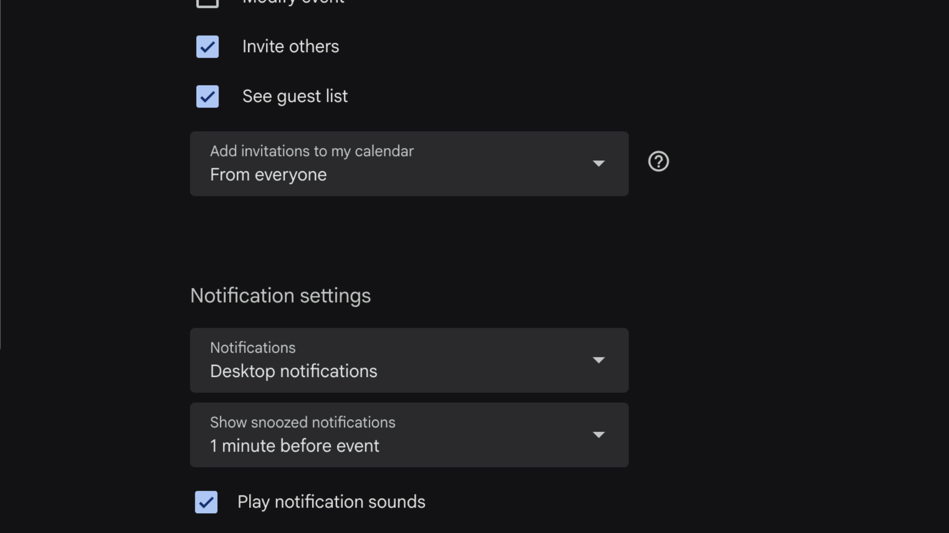 Changes will apply to future invitations and do not affect events already on your calendar.
