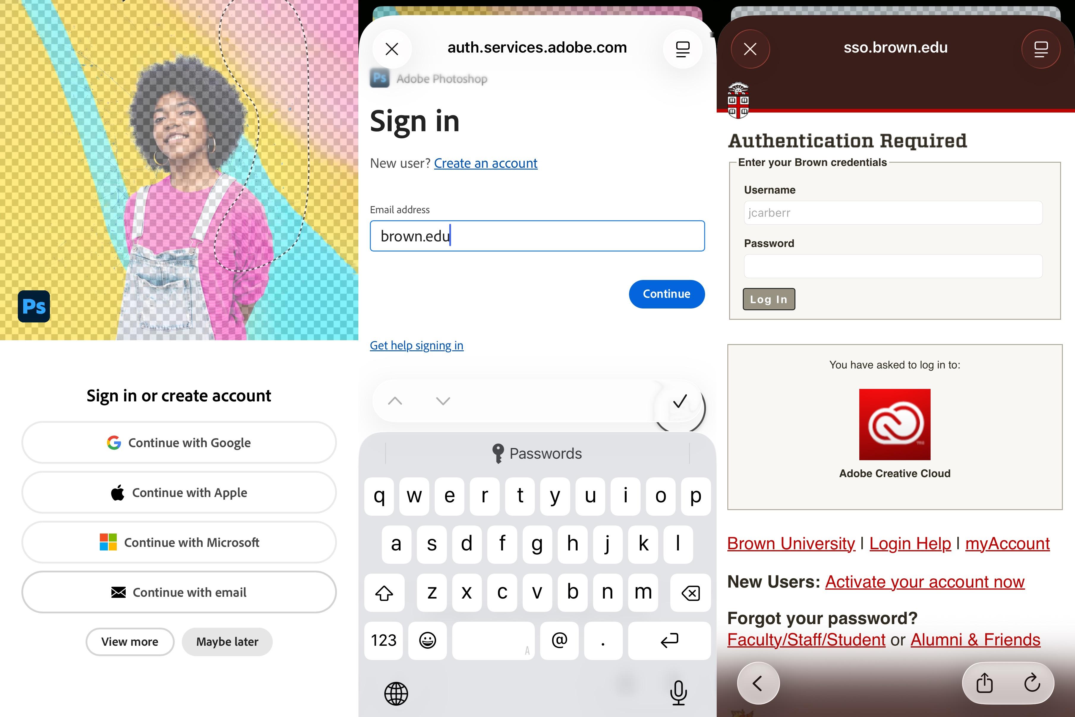 You can log into Adobe Creative Cloud mobile apps with your Brown account. Here's how: